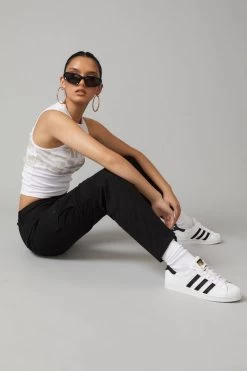 - Fitted silhouette with kick flare