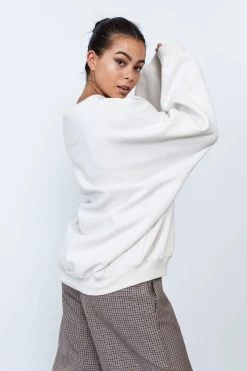 Crew Neckline Slouchy Silhouette Drop Shoulder Graphic Print Premium Brushed Fleece